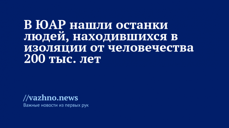 В ЮАР были обнаружены останки людей, которые, по оценкам исследователей, находились в генетической изоляции от остального человечества примерно 200 тысяч лет. Об этом 3 декабря сообщила пресс-служба университета Упсалы, ссылаясь на руководителя проекта и профессора генетики Маттиаса Якобссона из университета Упсалы.