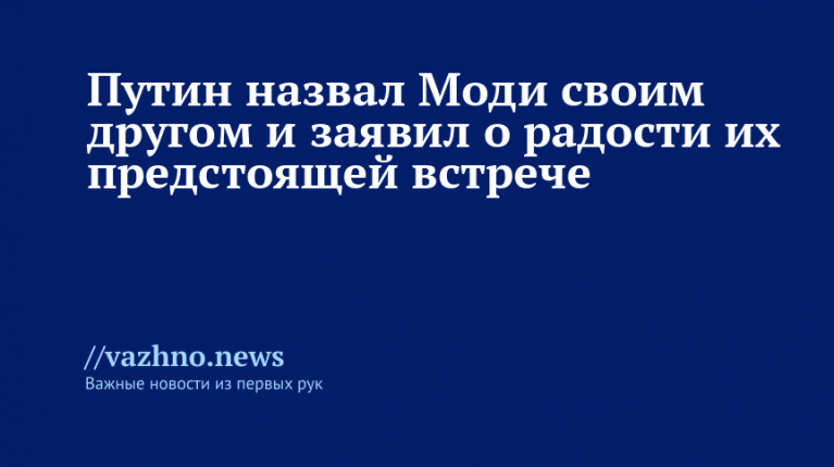 Президент России Владимир Путин 4 декабря, накануне визита в Нью-Дели, сообщил, что с большим удовольствием ожидает предстоящей встречи с премьер-министром Индии Нарендрой Моди, которого рассматривает как своего друга.