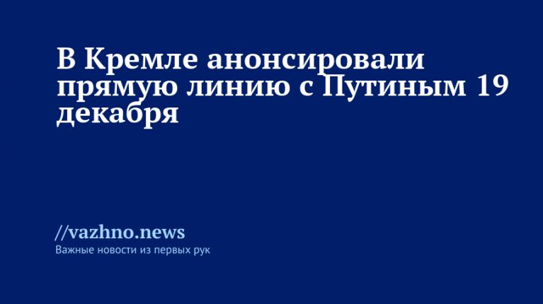 «19 декабря в 12:00 по московскому времени в эфир выйдет программа «Итоги года с Владимиром Путиным». Глава государства в прямом эфире подведет итоги уходящего года и ответит на вопросы журналистов и жителей нашей страны», — говорится в сообщении.