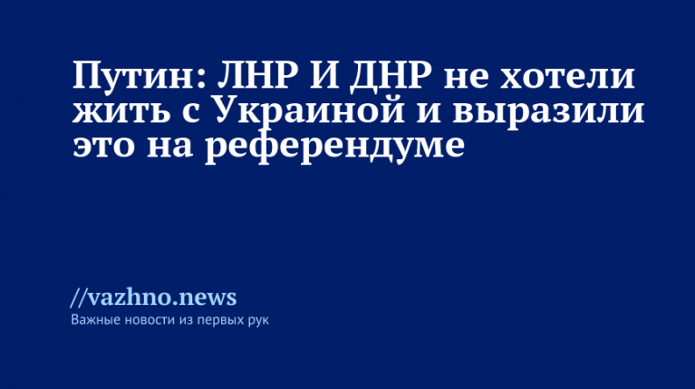 Жители Донецкой и Луганской Народных Республик заявили, что не хотят жить в составе Украины и подтвердили эту позицию на референдуме. Об этом 4 декабря сказал президент России Владимир Путин в интервью India Today.