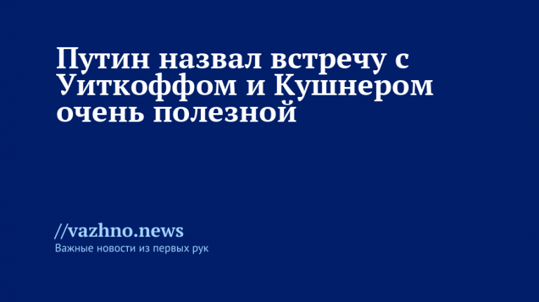 Президент России Владимир Путин 4 декабря охарактеризовал как очень полезную встречу со спецпосланником американского лидера Стивеном Уиткоффом и зятем президента США Джаредом Кушнером.