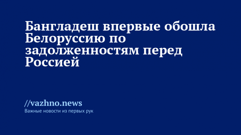 По анализу данных Всемирного банка от 4 декабря Бангладеш заняла первое место по объему задолженности перед Россией, сместив с этой позиции многолетнего лидера — Белоруссию.