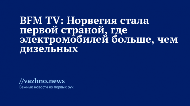 «По дорогам Норвегии ездят 918 тыс. электромобилей, что немного больше, чем дизельных моделей. В середине сентября электромобили уже вытеснили бензиновые авто, в чем Норвегия также стала первой в мире», — приводит телеканал заявление ассоциации.