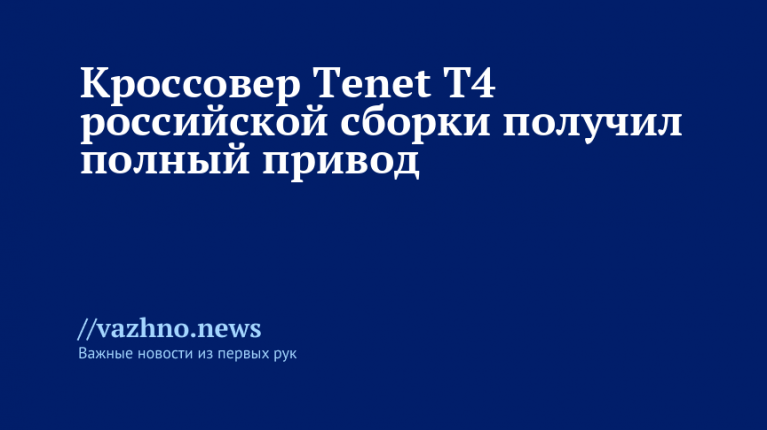 В России начались продажи кроссовера T4 российской марки Tenet с системой полного привода. Модель предлагается в двух вариантах комплектации — по 2,39 млн и 2,55 млн рублей, следует из сообщения компании, поступившего «Известиям» 4 декабря. Ранее автомобиль продавался исключительно с передним приводом.
