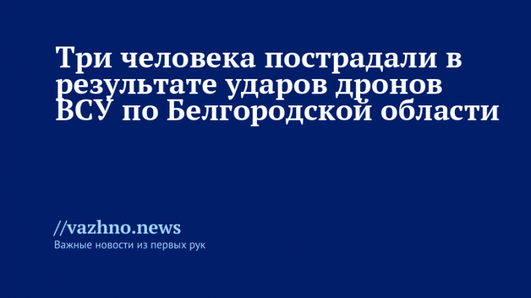 В Белгородской области в результате ударов беспилотных аппаратов Вооруженных сил Украины пострадали три мирных жителя. Об этом 4 декабря сообщил губернатор области Вячеслав Гладков.