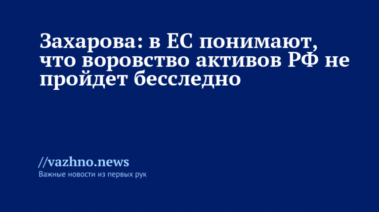 Захарова: в ЕС считают, что конфискация активов РФ не пройдет бесследно