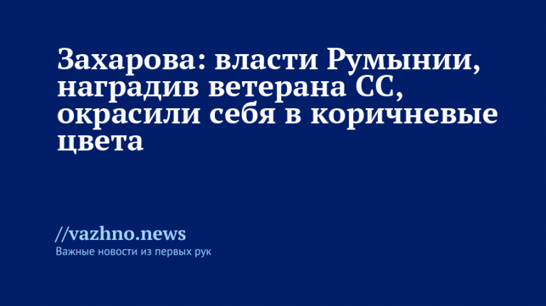 Захарова: Румыния, наградив ветерана СС, окрасилась в коричневое