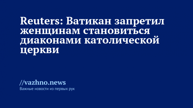«Высокопоставленная комиссия Ватикана проголосовала против предоставления женщинам-католикам права служить диаконами, сохранив тем самым практику всемирной Церкви, согласно которой все священнослужители являются мужчинами», — говорится в материале.
