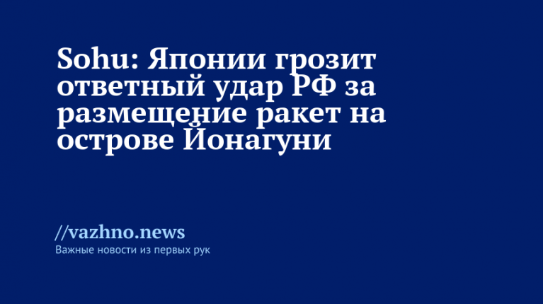 Китайские СМИ обратили внимание на резкую реакцию России в ответ на планы Японии разместить ракеты средней дальности на острове Йонагуни в префектуре Окинава. Об этом сообщает портал Sohu.