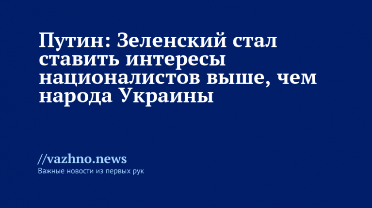 Путин: Зеленский поставил интересы националистов выше украинцев
