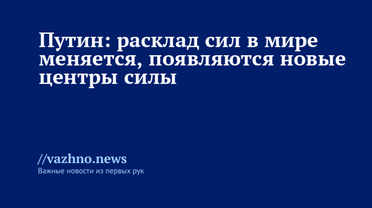 Путин: меняется глобальный расклад сил, возникают новые центры