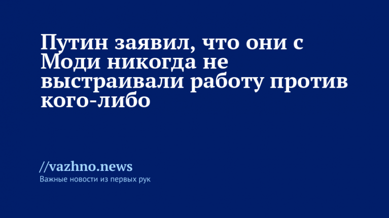 Президент России Владимир Путин и премьер-министр Индии Нарендра Моди никогда не выстраивали свою работу против каких-либо стран, а действовали исключительно в интересах своих государств. Об этом российский лидер заявил 4 декабря в интервью телеканалу India Today.