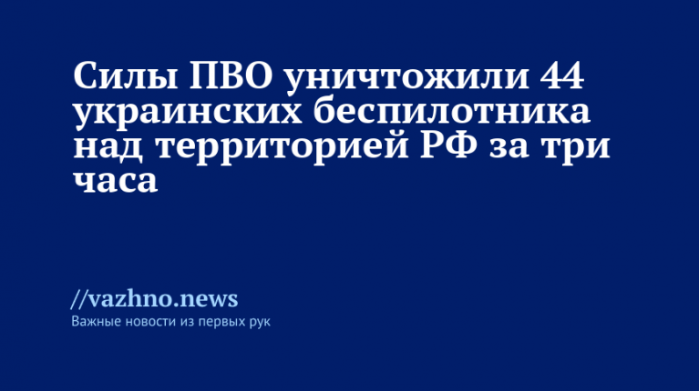«В период с 20:00 до 23:00 мск дежурными средствами ПВО уничтожены 44 украинских беспилотных летательных аппарата», — говорится в сообщении в Telegram-канале.