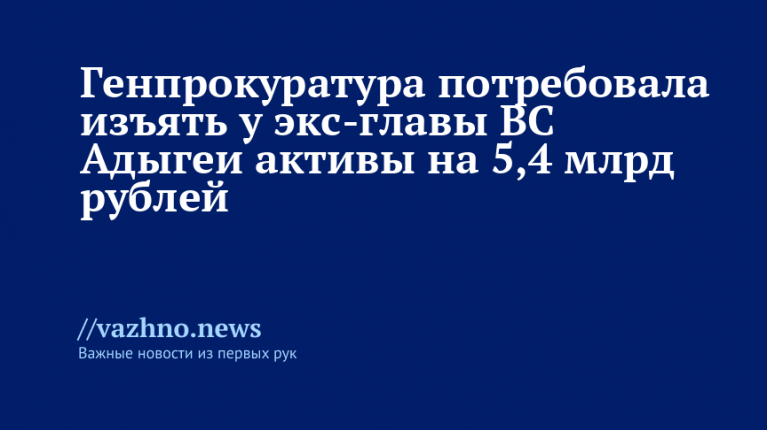 Генпрокуратура требует изъять у экс-главы ВС Адыгеи 5,4 млрд руб.