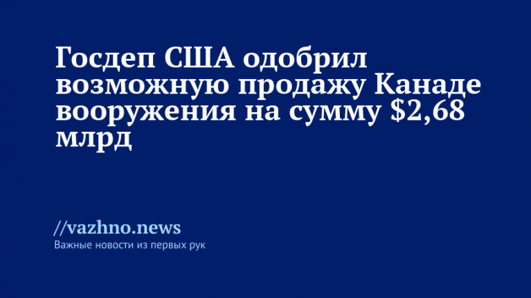 «Госдепартамент принял решение о одобрении возможной зарубежной военной продажи правительству Канады авиационного оружия и связанного с ним оборудования на оценочную стоимость в $2,68 млрд», — говорится в публикации.