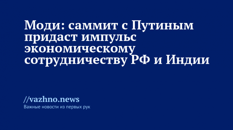 Моди: саммит с Путиным ускорит экономическое сотрудничество РФ и Индии