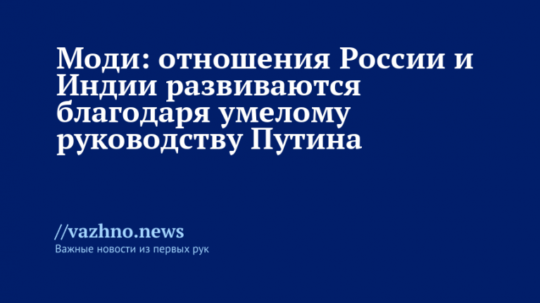 «За последние 25 лет президент Путин неоднократно подпитывал эти отношения своим умелым руководством и своим видением каждой ситуации. Его руководство привело к тому, что укрепились взаимные отношения [России и Индии] и достигли новых высот», — сказал Моди.