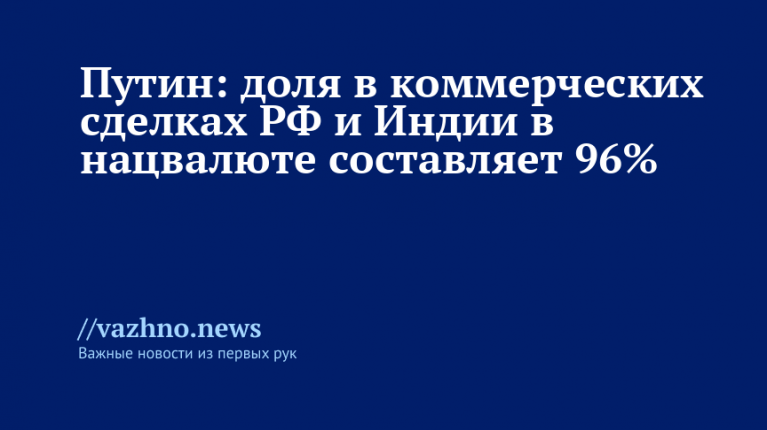 По итогам переговоров с премьер-министром Индии Нарендрой Моди президент России Владимир Путин 5 декабря сообщил, что доля коммерческих сделок между Россией и Индией, совершаемых в национальных валютах, достигает 96%.