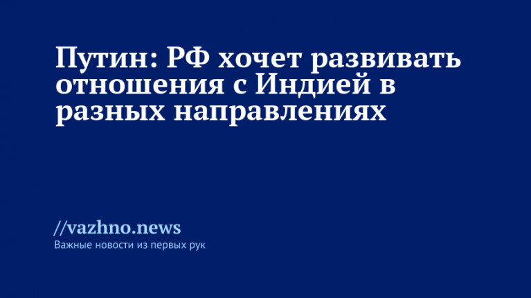 Президент РФ Владимир Путин 5 декабря заявил, что Россия намерена развивать разноплановые отношения с Индией в разных сферах, а не ограничиваться только энергетикой и обороной.