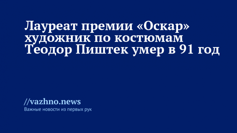 Чешский художник по костюмам и лауреат премии «Оскар» Теодор Пиштек скончался на 92-м году жизни. Об этом 5 декабря сообщает агентство Associated Press, ссылаясь на сообщение его семьи.