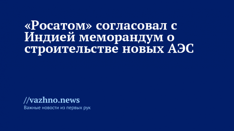Росатом и Индия согласовали меморандум о строительстве новых АЭС