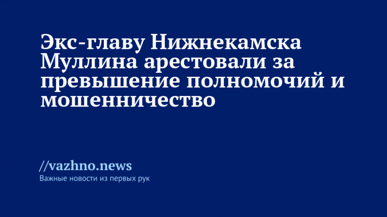 «Суд избрал в отношении экс-мэра города Нижнекамска Рамиля Муллина меру пресечения в виде заключения под стражу. Мужчина обвиняется по ч. 4 ст. 159 УК РФ («Мошенничество»), п. «г» и п. «е» ч. 3 ст. 286 УК РФ («Превышение должностных полномочий»)», — говорится в публикации в Telegram-канале.