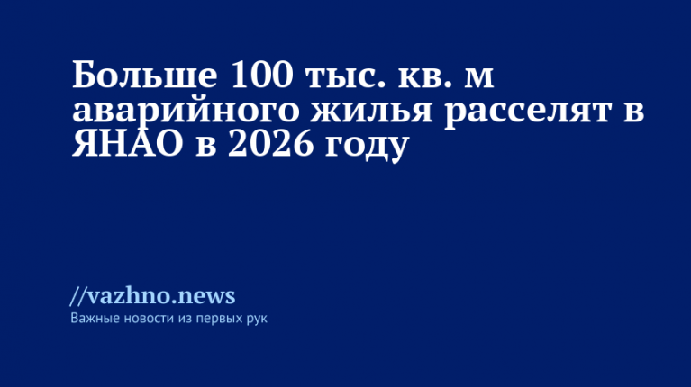 Органы власти Ямало-Ненецкого автономного округа планируют в 2026 году вывести из эксплуатации свыше 100 тыс. кв. м аварийного жилого фонда, направив жильцов в новые объекты; в регионе уже ведутся работы по строительству многоквартирных домов для переселенцев.