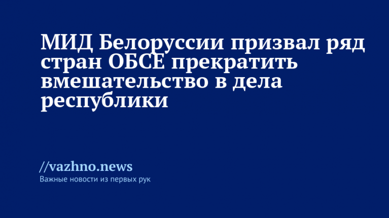В пятницу, 5 декабря, Министерство иностранных дел Белоруссии обратилось к ряду государств — членов Организации по безопасности и сотрудничеству (ОБСЕ) с призывом прекратить вмешательство во внутренние дела республики. Об этом 5 декабря сообщается на сайте ведомства.