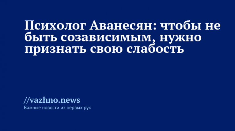 Психолог Аванесян: признать слабость — путь к свободе от созависимости