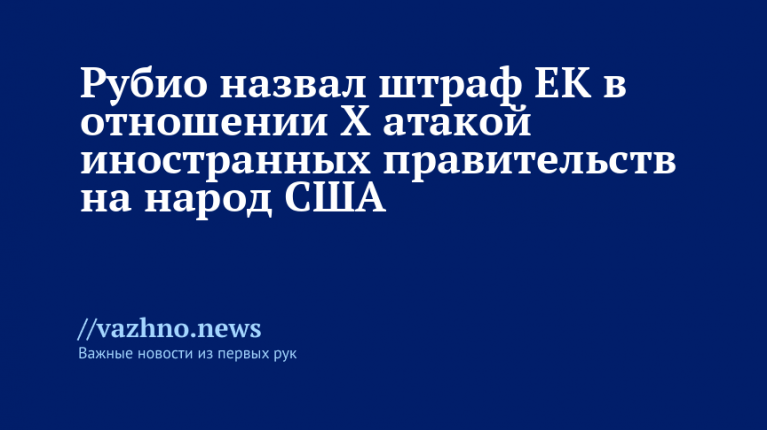 Решение Еврокомиссии оштрафовать соцсеть Х (бывш. Twitter) трактуется как нападение иностранных правительств на народ США. Об этом 5 декабря заявил госсекретарь США Марко Рубио.