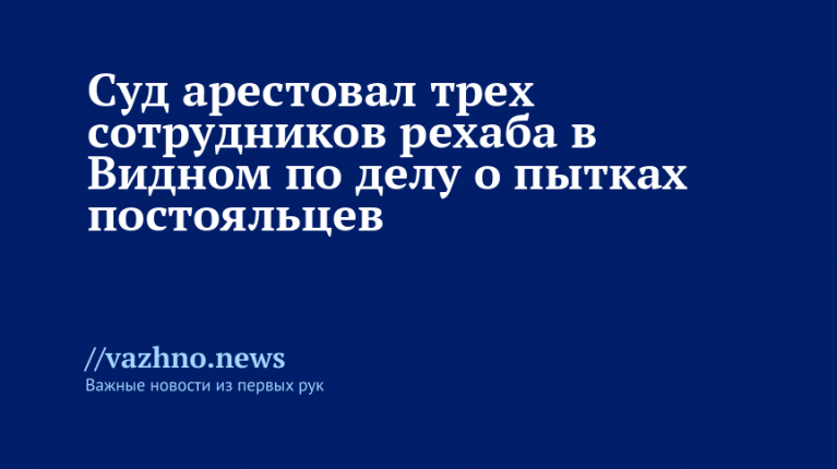 «По ходатайству следователя следственного отдела по городу Видное ГСУ СК России по Московской области судом арестованы трое сотрудников центра, обвиняемые в незаконном лишении свободы постояльцев», — говорится в Telegram-канале.
