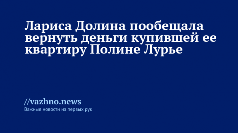 5 декабря исполнительница Лариса Долина сообщила о том, что решила полностью вернуть деньги покупательнице своей московской квартиры — Полине Лурье.
