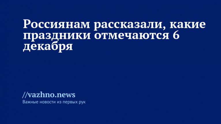 В субботу, 6 декабря, приходится сразу несколько памятных дат. На этот день выпадают Дeнь рoждeния Caнтa-Клaуca, День образования подразделений по контролю за оборотом наркотиков в системе МВД России и церковное празднование памяти благоверного князя Александра Невского. Подробности об этих и других событиях субботы смотрите в материале «Известий».