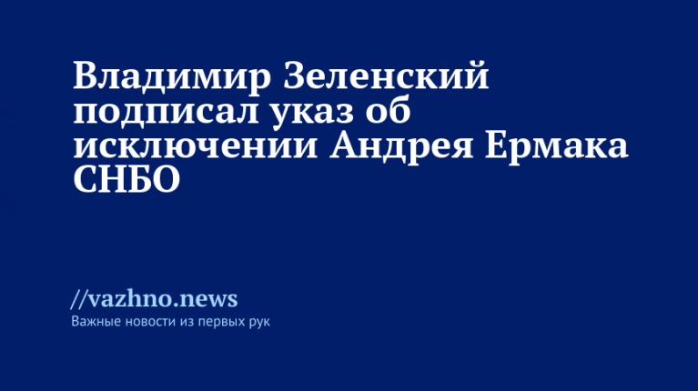 Президент Украины Владимир Зеленский исключил из состава Совета национальной безопасности и обороны Украины (СНБО) и из Ставки Верховного Главнокомандующего бывшего руководителя своего офиса Андрея Ермака. Соответствующие указы от 5 декабря размещены на сайте президента Украины.