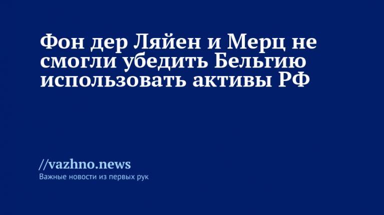 Встрече главы Еврокомиссии Урсулы фон дер Ляйен с канцлером ФРГ Фридрихом Мерцем и премьер-министром Бельгии Бартом де Вевером, посвященной инициативе ЕК о применении замороженных российских активов для финансирования Украины, не удалось дать положительного результата. Об этом фон дер Ляйен сообщила 5 декабря.