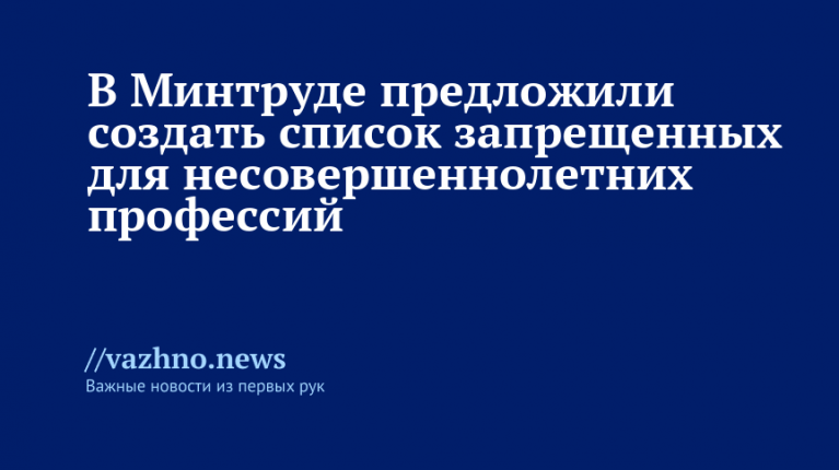 «Минтруд России предложил усовершенствовать подходы к охране труда несовершеннолетних. В частности, предлагается выделить перечень работ, при выполнении которых запрещен труд несовершеннолетних», — говорится в тексте.