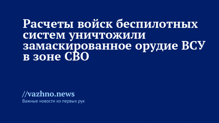 Расчеты войск БПЛА уничтожили замаскированное орудие ВСУ в СВО