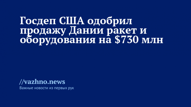 Госдеп США дал согласие на поставку в Данию более 200 ракет класса «воздух-воздух» вместе с сопутствующим оборудованием на сумму $730 млн. Об этом 5 декабря сообщило Агентство по сотрудничеству в области безопасности (DSCA) при министерстве обороны США.