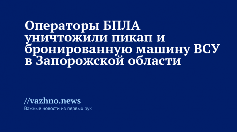 Операторы беспилотных летательных аппаратов (БПЛА) группировки войск «Восток» ликвидировали броневая боевую машину (ББМ) «Козак» и пикапы Вооруженных сил Украины в населенном пункте Гуляйполе Запорожской области, в результате чего была сорвана ротация войск противника. Об этом в Минобороны РФ сообщили 6 декабря.