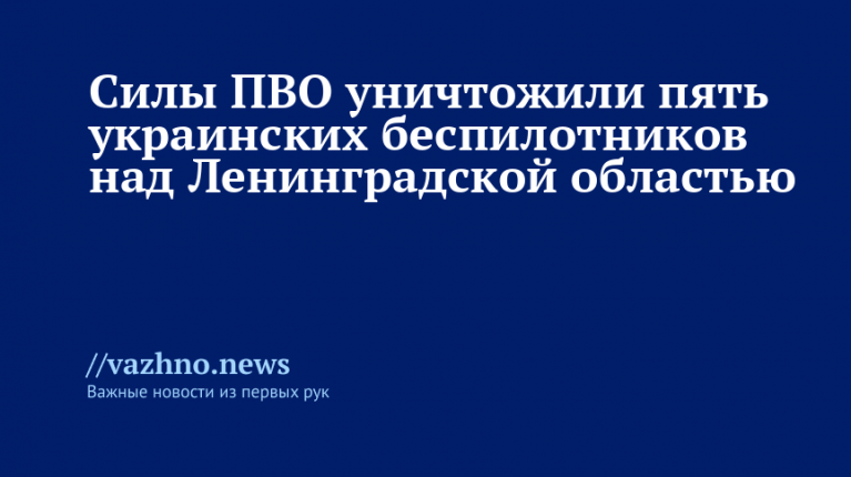 Силы ПВО сбили пять украинских беспилотников над Ленинградской областью