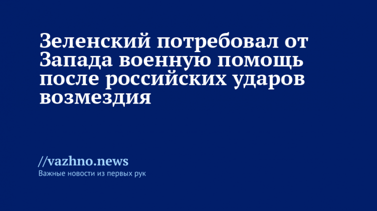 Президент Украины Владимир Зеленский потребовал от западных стран дополнительной военной помощи после ударов возмездия Вооруженных сил (ВС) России по энергетическим объектам, которые используются в интересах боевиков киевского режима. Об этом он сообщил 6 декабря в своем Telegram-канале.