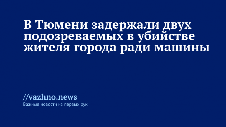 В Тюмени задержали двух человек по подозрению в убийстве местного жителя ради его автомобиля. Об этом 6 декабря сообщили на официальном сайте Следственного комитета России по региону.