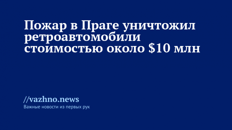 «Крупный пожар произошел в ночь на субботу в шиномонтажном автосервисе в пражском районе Страшнице. В здании находились ретроавтомобили. Предварительный ущерб оценивается в 200 млн крон ($10 млн. — Ред.)», — приводит его слова новостной портал Idnes.