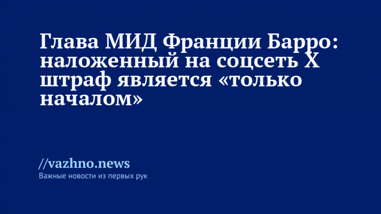 Штраф в размере €120 млн, наложенный на социальную сеть X (бывш. Twitter) американского бизнесмена и предпринимателя Илона Маска, стал лишь начальным шагом. Об этом 6 декабря заявил министр иностранных дел Франции Жан-Ноел Барро.