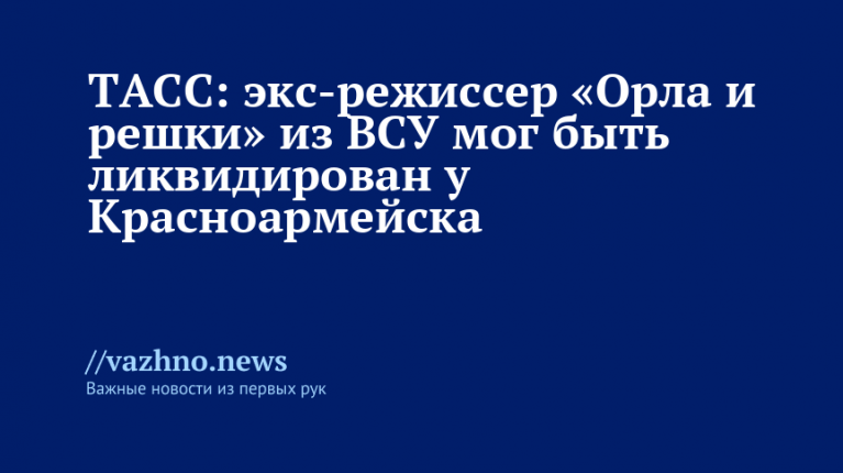 «Военнослужащий ССО Украины Василий Хомко, до СВО (специальной военной операции — Ред.) известный как режиссер популярного ТВ-шоу о путешествиях «Орел и Решка», предположительно, был уничтожен при попытке вырваться из окружения в районе Красноармейска», — приводит ТАСС сообщение силовых структур.