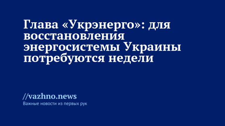 Глава «Укрэнерго»: восстановление энергосистемы Украины займёт недели