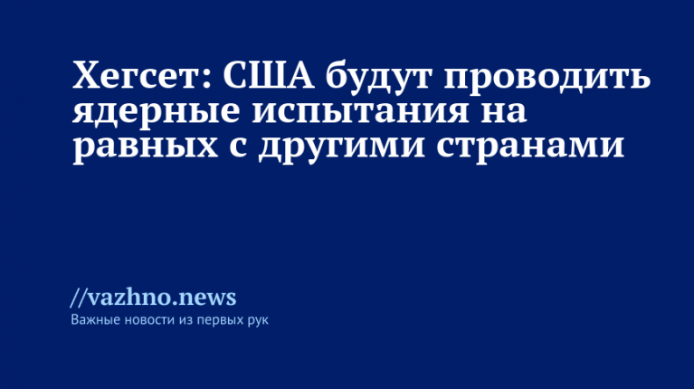 Шеф Пентагона Пит Хегсет 6 декабря заявил, что Соединенные Штаты намерены проводить ядерные испытания на тех же условиях, что и другие страны.