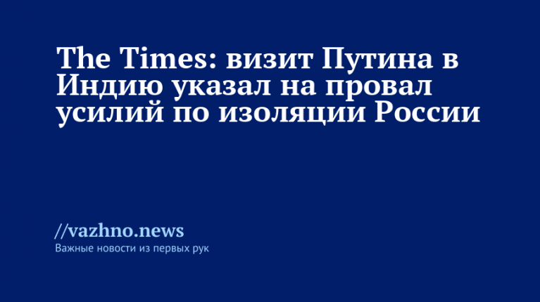 Визит президента РФ Владимира Путина в Индию продемонстрировал неудачу усилий западных государств по попыткам изолировать Россию. Об этом 6 декабря написала британская газета The Times.
