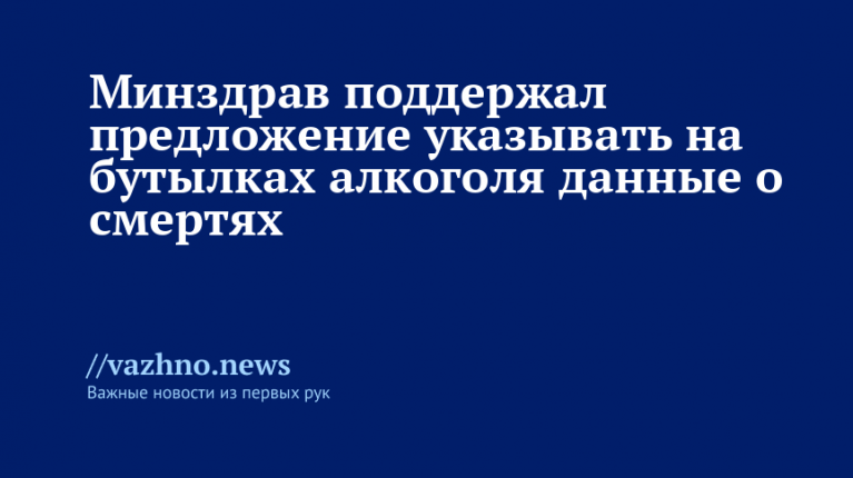 Минздрав РФ заявил о поддержке инициативы депутатов Госдумы о том, чтобы на бутылках алкогольной продукции указывали информацию о ежегодном числе смертей, увольнений и заболеваний, вызванных её употреблением. Об этом 7 декабря сообщила заместитель министра здравоохранения РФ Евгения Котова.