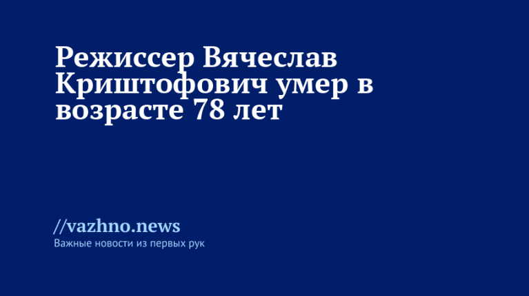 На 79-м году жизни скончался режиссер и сценарист Вячеслав Криштофович. О гибели мастера 7 декабря сообщил кинокритик Андрей Плавхов в своем Telegram-канале.